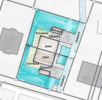 2 Bauplätze für Doppelhaus je ca. 500 m²